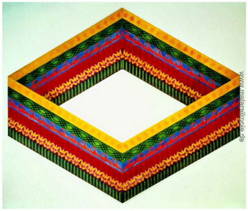 100% Handgemalte Produktion von Banded Enclosure' von Philip Taaffe auf Leinwand, Kunstreproduktion in Museumsqualität.