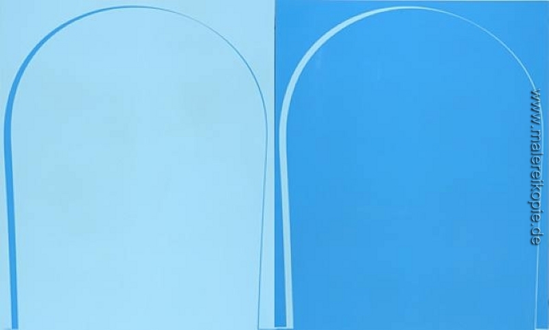 100% Handgemalte Produktion von Gegossen Reversal Painting: Hellblau, Blau' von Ian Davenport auf Leinwand, Kunstreproduktion in Museumsqualität.