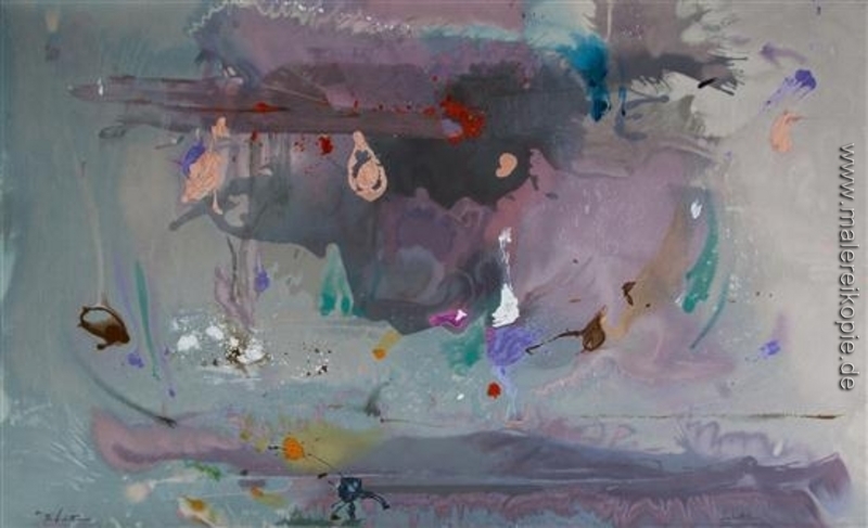 100% Handgemalte Produktion von Grau Feuerwerk' von Helen Frankenthaler auf Leinwand, Kunstreproduktion in Museumsqualität.
