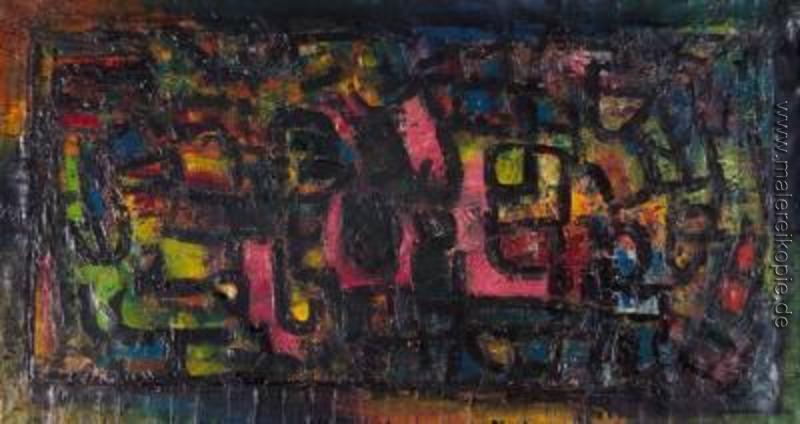 100% Handgemalte Produktion von Komposition in Rot und Schwarz' von Ralph Rosenborg auf Leinwand, Kunstreproduktion in Museumsqualität.