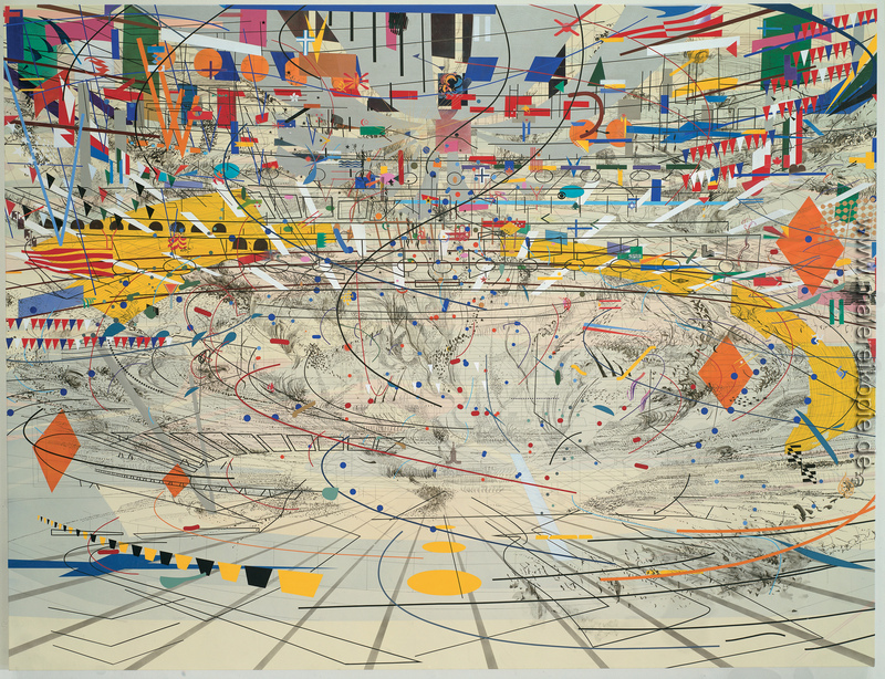 100% Handgemalte Produktion von Stadia II' von Julie Mehretu auf Leinwand, Kunstreproduktion in Museumsqualität.