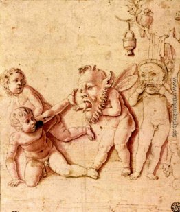 Christus Mitleid von einem Cherub und Seraph unterstützt