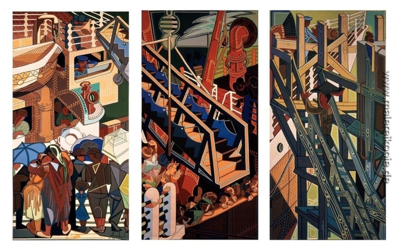 100% Handgemalte Produktion von Abfahrt von Einwanderern, Wandteppiche' von Jose de Almada-Negreiros auf Leinwand, Kunstreproduktion in Museumsqualität.