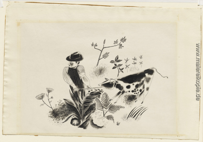 100% Handgemalte Produktion von Das Kalb will nicht gehen' von Yasuo Kuniyoshi auf Leinwand, Kunstreproduktion in Museumsqualität.