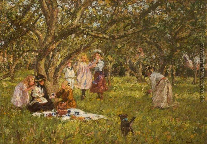 100% Handgemalte Produktion von Das Picknick' von James Charles auf Leinwand, Kunstreproduktion in Museumsqualität.
