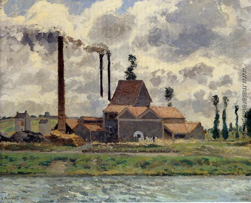 100% Handgemalte Produktion von Die Fabrik' von Camille Pissarro auf Leinwand, Kunstreproduktion in Museumsqualität.