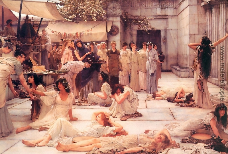 100% Handgemalte Produktion von Die Frauen von Amphissa' von Sir Lawrence Alma-Tadema auf Leinwand, Kunstreproduktion in Museumsqualität.