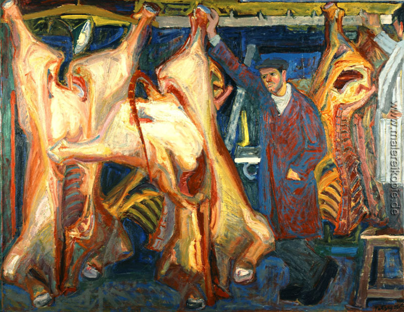 100% Handgemalte Produktion von Die Metzgerei' von Panayiotis Tetsis auf Leinwand, Kunstreproduktion in Museumsqualität.