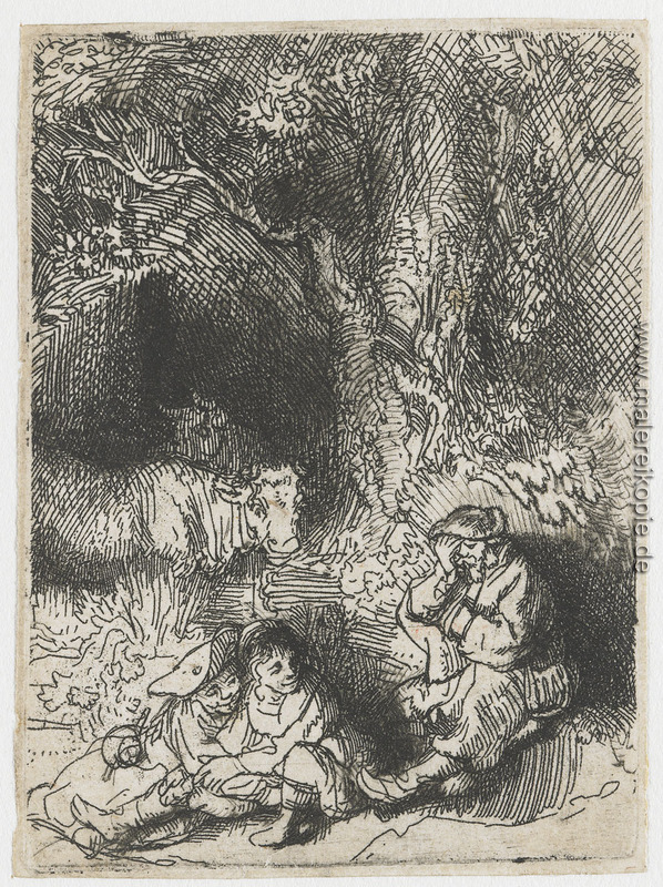 100% Handgemalte Produktion von Die schlafende Hirt' von Rembrandt auf Leinwand, Kunstreproduktion in Museumsqualität.