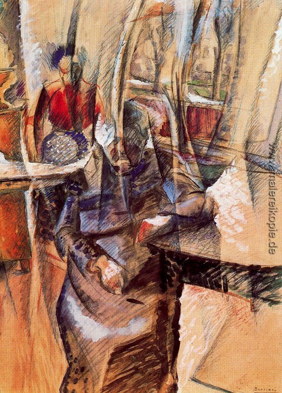100% Handgemalte Produktion von Interieur mit zwei weibliche Zahlen' von Umberto Boccioni auf Leinwand, Kunstreproduktion in Museumsqualität.