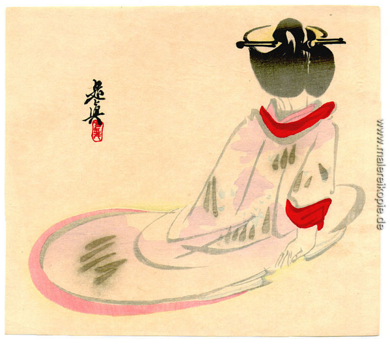 100% Handgemalte Produktion von Sitting Lady' von Shibata Zeshin auf Leinwand, Kunstreproduktion in Museumsqualität.