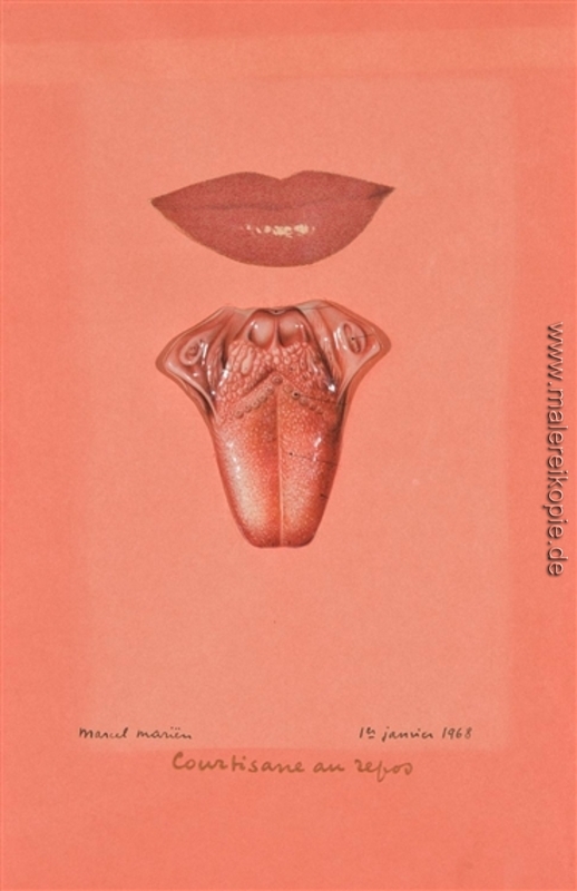 100% Handgemalte Produktion von Courtisane au repos' von Marcel Marien auf Leinwand, Kunstreproduktion in Museumsqualität.