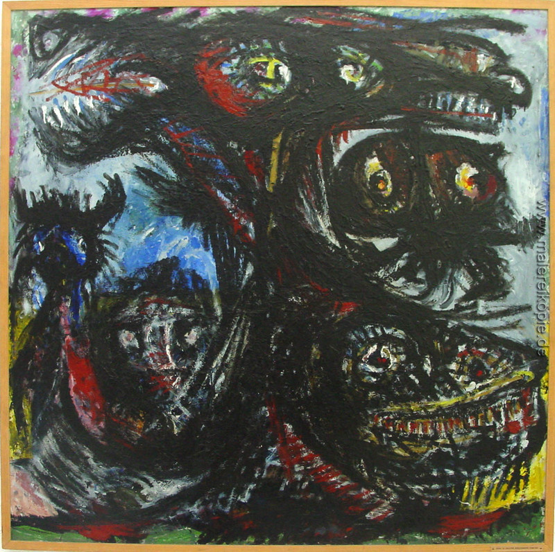 100% Handgemalte Produktion von Le droit d'Aigle' von Asger Jorn auf Leinwand, Kunstreproduktion in Museumsqualität.
