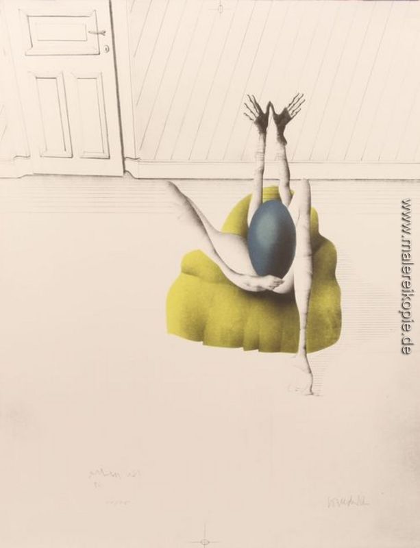 100% Handgemalte Produktion von L'Oeuf Blau' von Paul Wunderlich auf Leinwand, Kunstreproduktion in Museumsqualität.