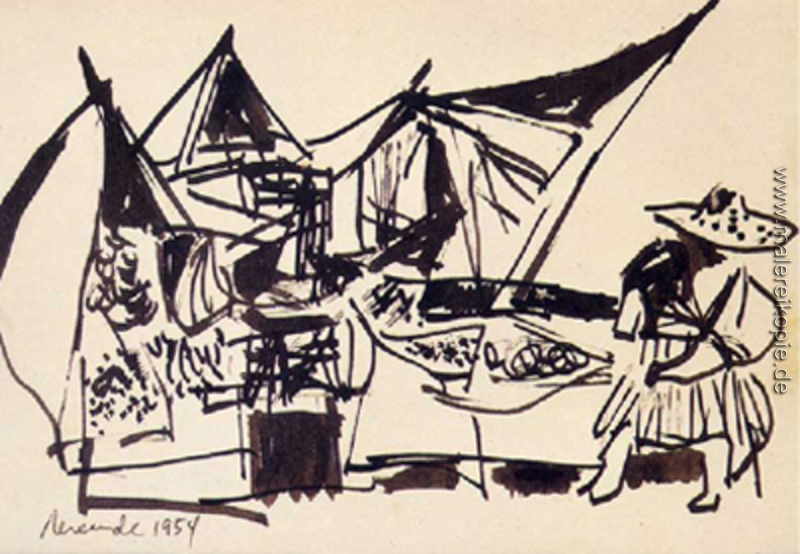 100% Handgemalte Produktion von Póvoa de Varzim' von Julio Resende auf Leinwand, Kunstreproduktion in Museumsqualität.