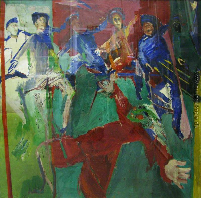 100% Handgemalte Produktion von Red Army Ensemble' von Patrick Procktor auf Leinwand, Kunstreproduktion in Museumsqualität.