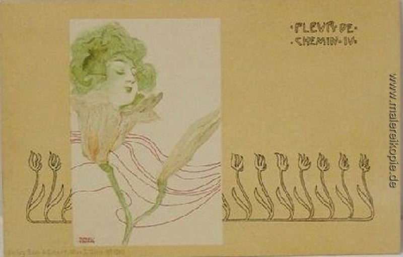 100% Handgemalte Produktion von Straße Blumen' von Raphael Kirchner auf Leinwand, Kunstreproduktion in Museumsqualität.