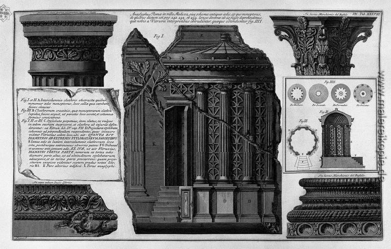 100% Handgemalte Produktion von Villa Medici Anagliphus Rom, usw. (Kapitelle und Basen)' von Giovanni Battista Piranesi auf Leinwand, Kunstreproduktion in Museumsqualität.