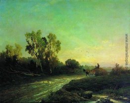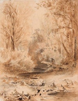 Landschaft mit Bauernhütten und Teich in der Nähe von St. Peters