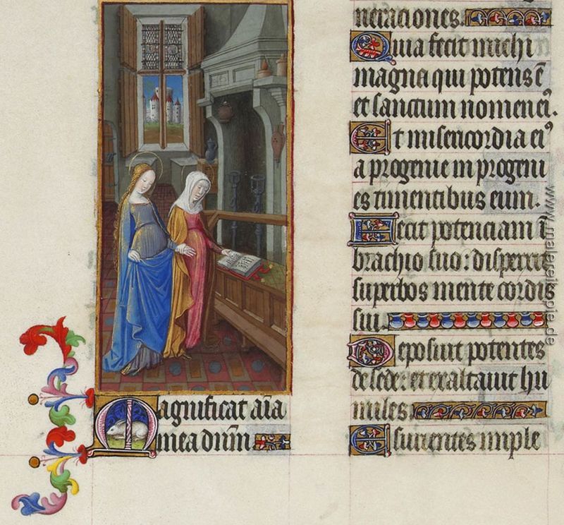 100% Handgemalte Produktion von Die Heimsuchung' von Limbourg brothers auf Leinwand, Kunstreproduktion in Museumsqualität.