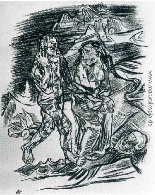 100% Handgemalte Produktion von Mann und Frau auf dem Weg in den Tod' von Oskar Kokoschka auf Leinwand, Kunstreproduktion in Museumsqualität.