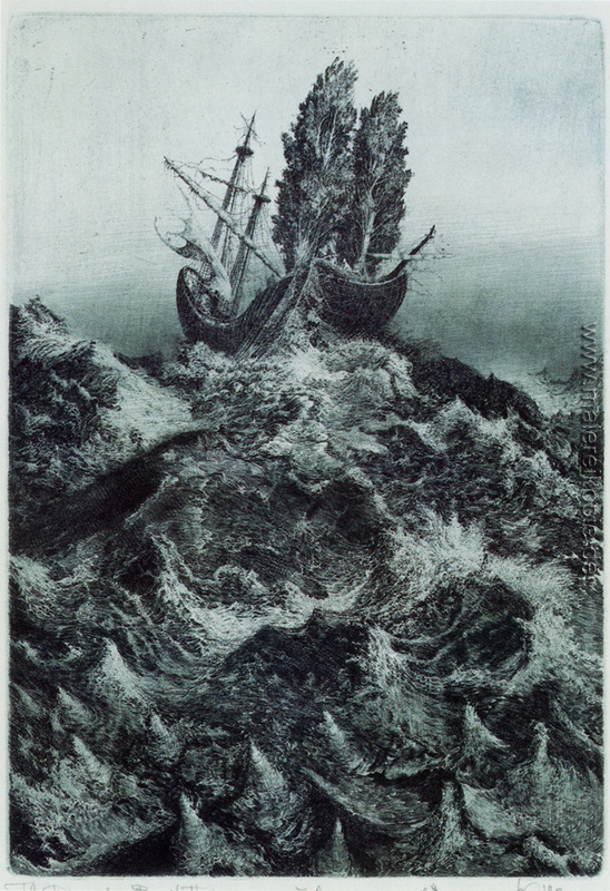 100% Handgemalte Produktion von Unbekannter Titel' von Albin Brunovsky auf Leinwand, Kunstreproduktion in Museumsqualität.