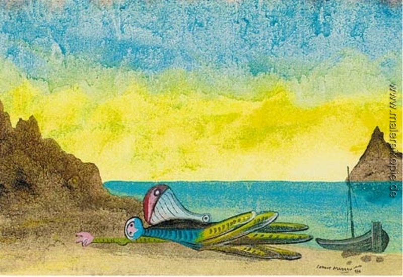100% Handgemalte Produktion von An der Küste' von Conroy Maddox auf Leinwand, Kunstreproduktion in Museumsqualität.
