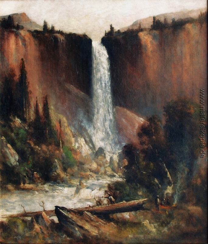 100% Handgemalte Produktion von Anglercamp Unten Nevada Falls' von Thomas Hill auf Leinwand, Kunstreproduktion in Museumsqualität.
