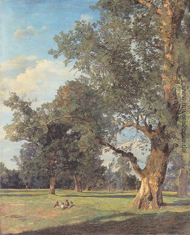 100% Handgemalte Produktion von Bäume im Prater mit sitzenden Figuren' von Ferdinand Georg Waldmüller auf Leinwand, Kunstreproduktion in Museumsqualität.