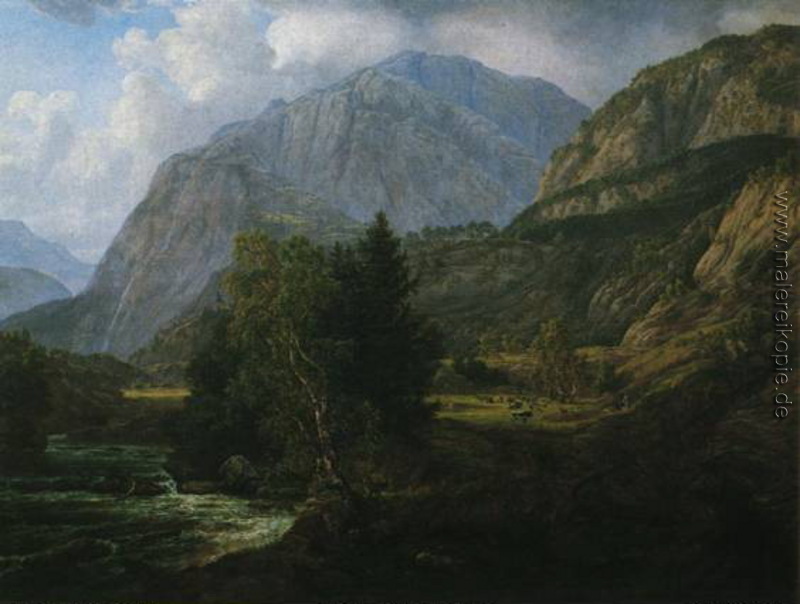 100% Handgemalte Produktion von Blick auf Fortundalen' von Johan Christian Dahl auf Leinwand, Kunstreproduktion in Museumsqualität.
