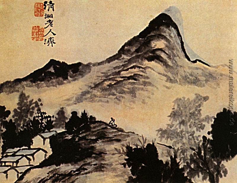 100% Handgemalte Produktion von Das Gespräch mit dem Berg' von Shitao auf Leinwand, Kunstreproduktion in Museumsqualität.