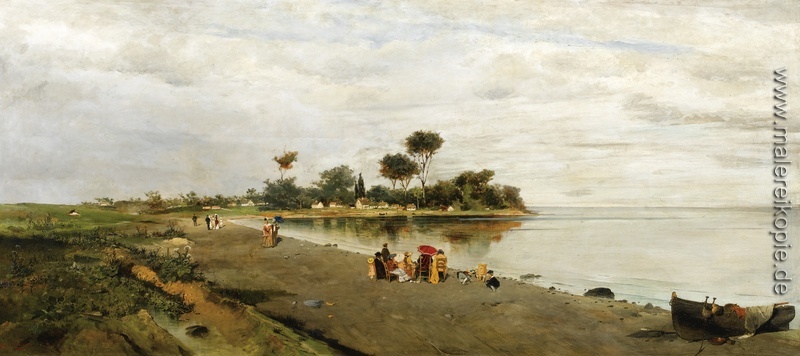 100% Handgemalte Produktion von Elegante Zahlen am Ufer' von Konstantinos Volanakis auf Leinwand, Kunstreproduktion in Museumsqualität.
