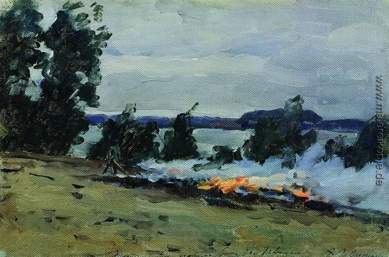 100% Handgemalte Produktion von Feuer' von Isaac Levitan auf Leinwand, Kunstreproduktion in Museumsqualität.