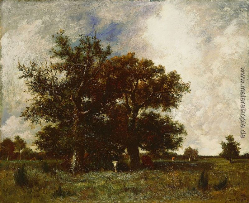 100% Handgemalte Produktion von Fontainebleau Oaks' von Jules Dupre auf Leinwand, Kunstreproduktion in Museumsqualität.