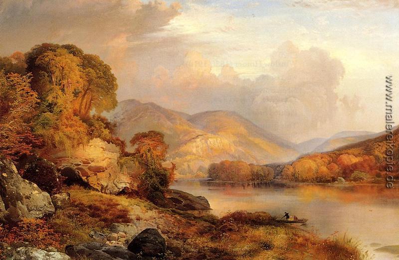 100% Handgemalte Produktion von Herbst-Landschaft' von Thomas Moran auf Leinwand, Kunstreproduktion in Museumsqualität.