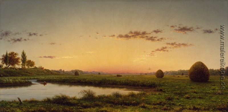 100% Handgemalte Produktion von Heuschober auf den Newbury Marshes' von Martin Johnson Heade auf Leinwand, Kunstreproduktion in Museumsqualität.