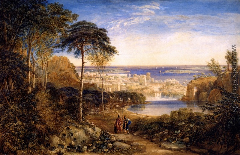 100% Handgemalte Produktion von Karthago. Aeneas und Achates' von David Cox auf Leinwand, Kunstreproduktion in Museumsqualität.