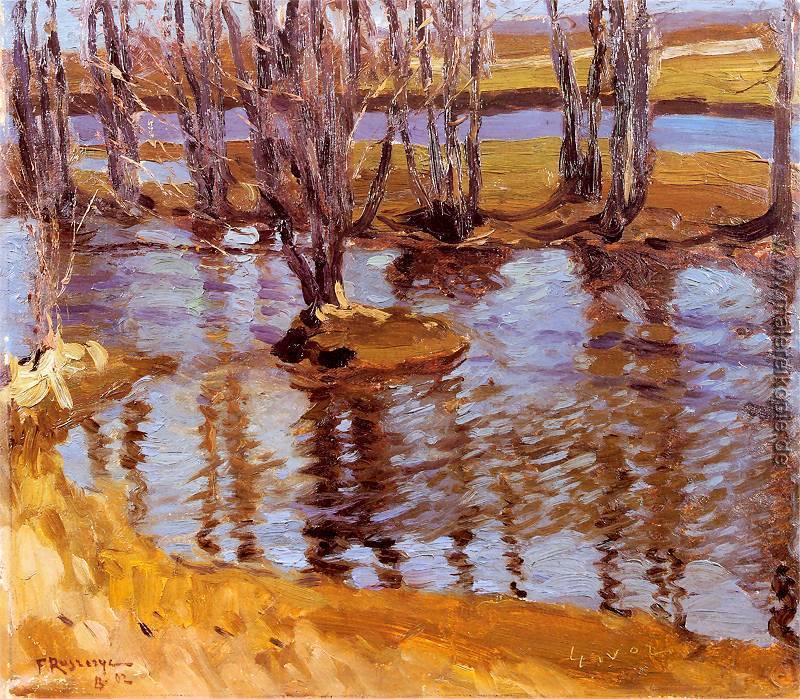 100% Handgemalte Produktion von Krajobraz' von Ferdynand Ruszczyc auf Leinwand, Kunstreproduktion in Museumsqualität.