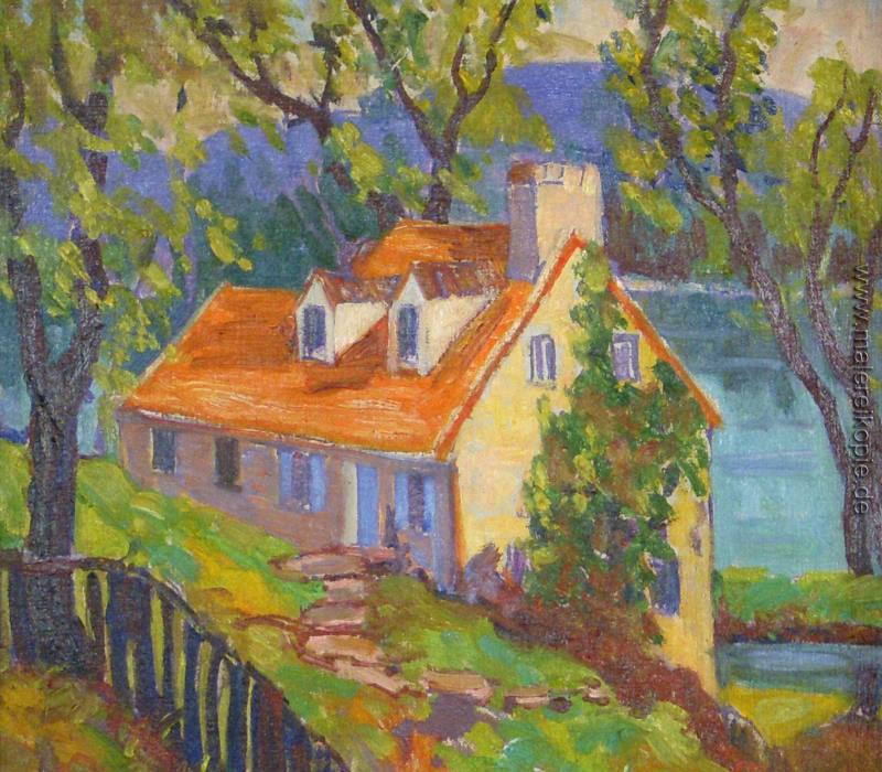 100% Handgemalte Produktion von Lumberville Cottage' von Fern Coppedge auf Leinwand, Kunstreproduktion in Museumsqualität.