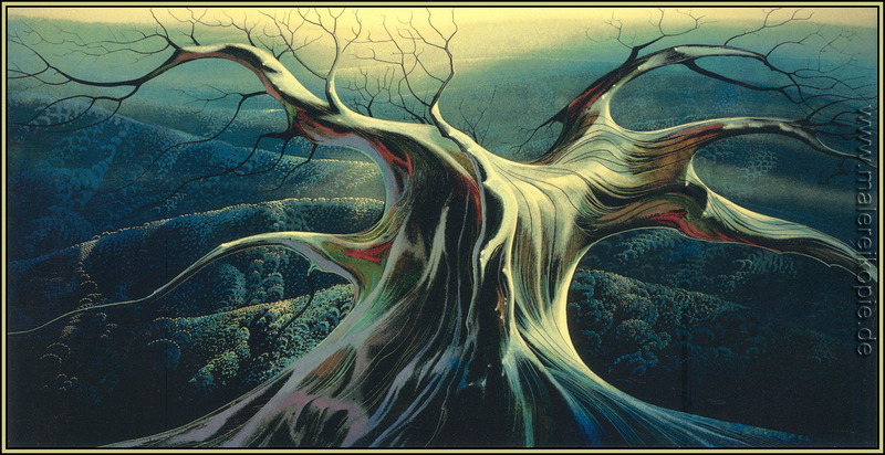 100% Handgemalte Produktion von Moonlit Stamm' von Eyvind Earle auf Leinwand, Kunstreproduktion in Museumsqualität.