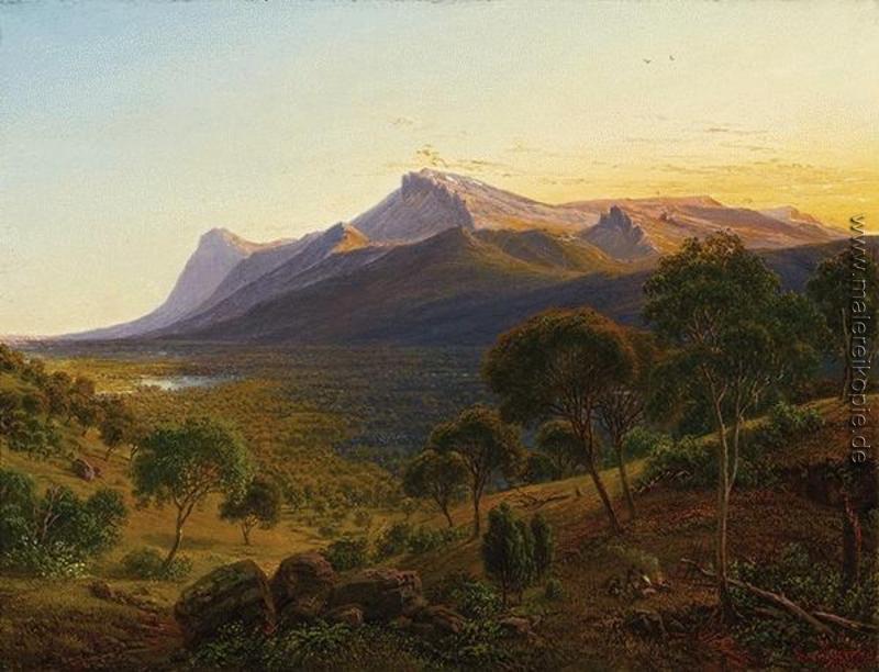 100% Handgemalte Produktion von Mount William, wie vom Mount Dryden in der Grampians, Victoria' von Eugene von Guerard auf Leinwand, Kunstreproduktion in Museumsqualität.