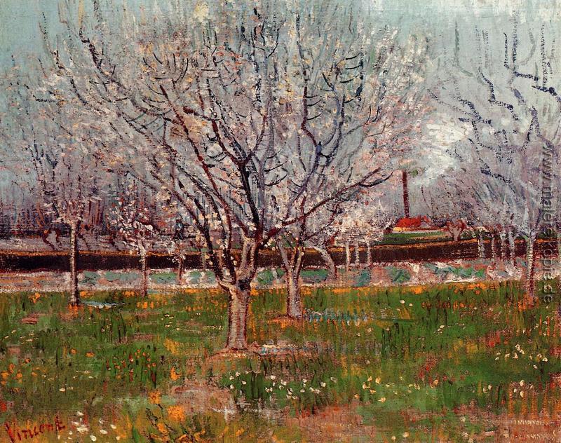 100% Handgemalte Produktion von Obstgarten in der Blüte (Pflaumen-Bäume)' von Vincent van Gogh auf Leinwand, Kunstreproduktion in Museumsqualität.