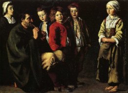 Land Innenraum mit dem jungen Spieler des Flageolett