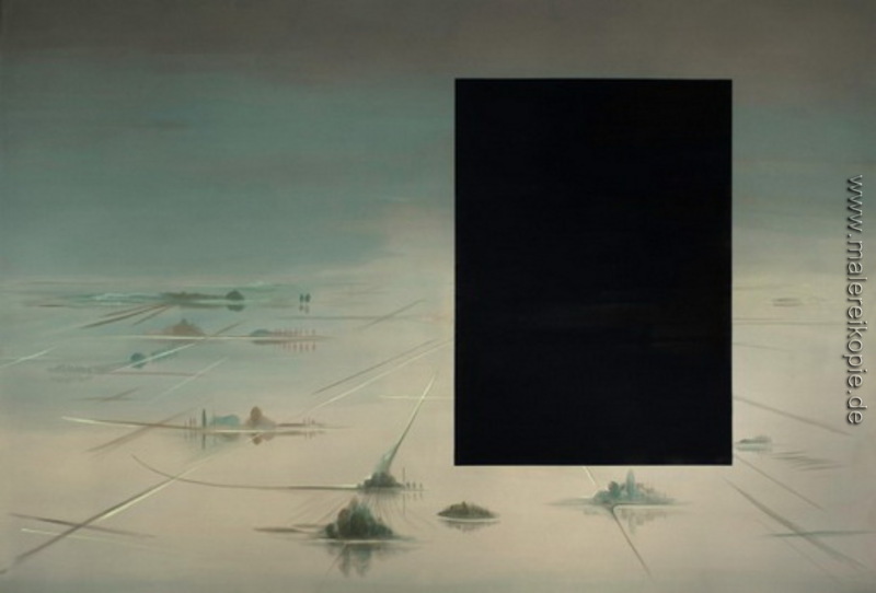 100% Handgemalte Produktion von Untitled, (Überschwemmung, schwarzes Dreieck), von Green Zone' von Wanda Koop auf Leinwand, Kunstreproduktion in Museumsqualität.