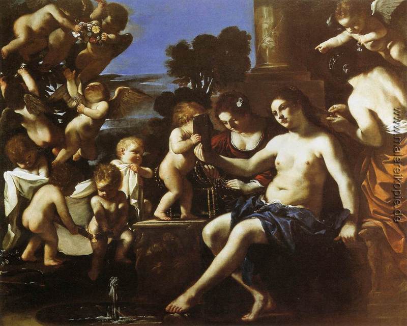 100% Handgemalte Produktion von Die Toilette der Venus' von Guercino auf Leinwand, Kunstreproduktion in Museumsqualität.