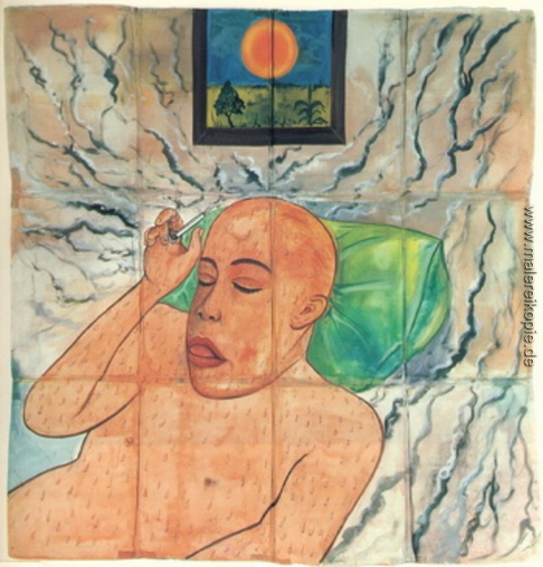 100% Handgemalte Produktion von Sonne' von Francesco Clemente auf Leinwand, Kunstreproduktion in Museumsqualität.