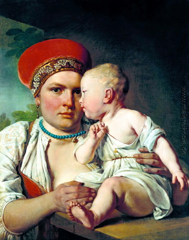 100% Handgemalte Produktion von Amme mit Kind' von Alexey Venetsianov auf Leinwand, Kunstreproduktion in Museumsqualität.