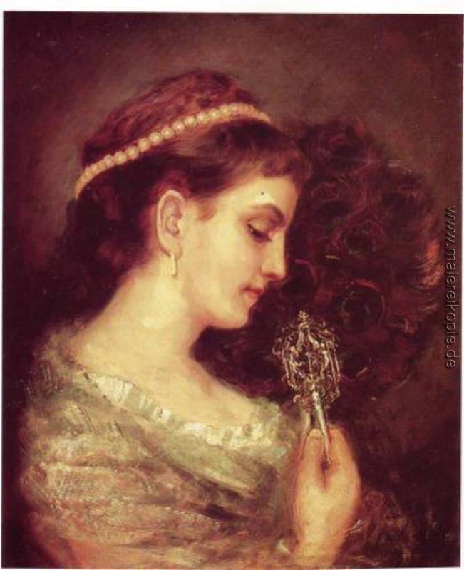 100% Handgemalte Produktion von Dame mit Fächer' von Maurycy Gottlieb auf Leinwand, Kunstreproduktion in Museumsqualität.