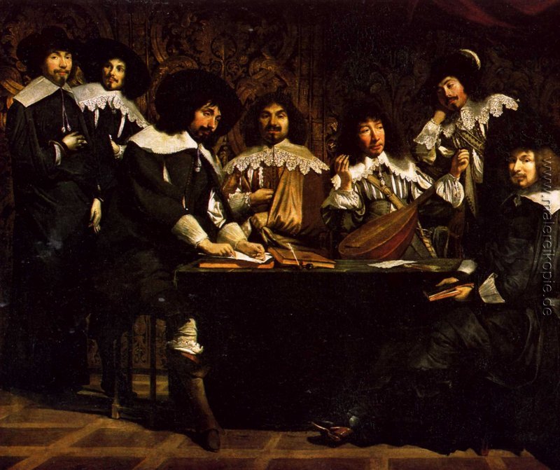 100% Handgemalte Produktion von Die Akademie' von Le Nain brothers auf Leinwand, Kunstreproduktion in Museumsqualität.