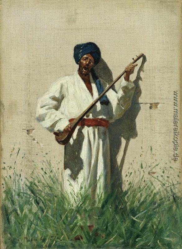 100% Handgemalte Produktion von Dutar-Player' von Vasily Vereshchagin auf Leinwand, Kunstreproduktion in Museumsqualität.